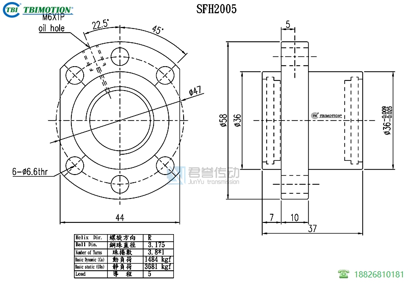 tbi滾珠絲桿螺母SFHR02005C1D,絲桿直徑20,導(dǎo)程05,珠圈數(shù)3..8*1,珠直徑3.175,動(dòng)額定負(fù)荷1484,靜額定負(fù)荷3681,剛性37。