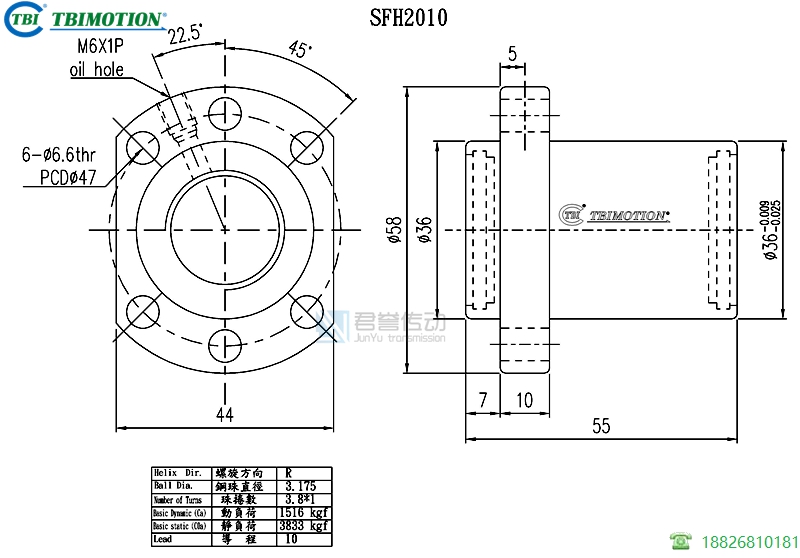 tbi滾珠絲桿螺母SFHR02010C1D,絲桿直徑20,導(dǎo)程10,珠圈數(shù)3.8*1,珠直徑3.175,動(dòng)額定負(fù)荷1516,靜額定負(fù)荷3833,剛性40。