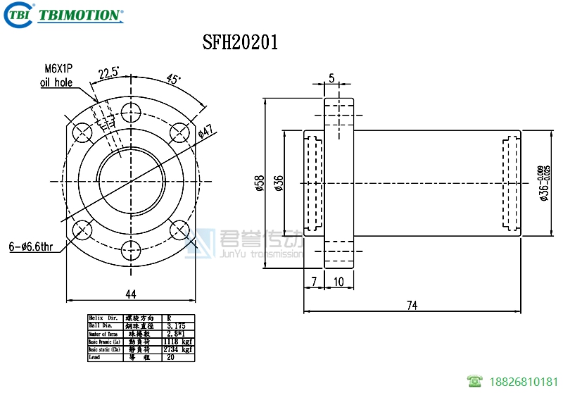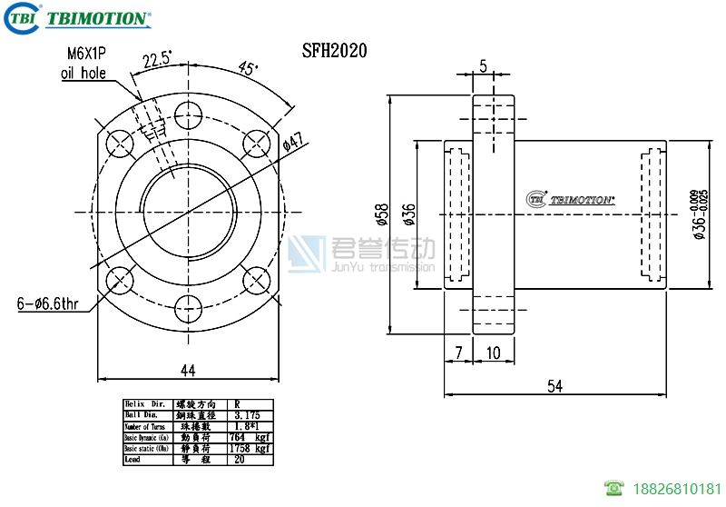 tbi滾珠絲桿螺母SFHR02020A1D,絲桿直徑20,導(dǎo)程20,珠圈數(shù)1.8*1,珠直徑3.175,動(dòng)額定負(fù)荷764,靜額定負(fù)荷1758,剛性19。