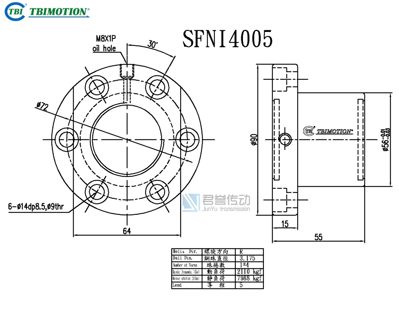tbi滾珠絲桿螺母SFNIR04005T4D,SFNIR04005T4N,法蘭雙切邊或者全圓,絲桿直徑40,導(dǎo)程05,珠圈數(shù)1*4,珠直徑3.175,動(dòng)額定負(fù)荷2110,靜額定負(fù)荷7988,剛性59。