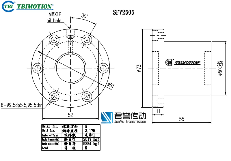 tbi滾珠絲桿螺母SFVR02505D1D,SFNIR02505D1N,法蘭雙切邊或者全圓,絲桿直徑25,導程05,珠圈數(shù)4.8*1,珠直徑3.175,動額定負荷2017,靜額定負荷5884,剛性56。