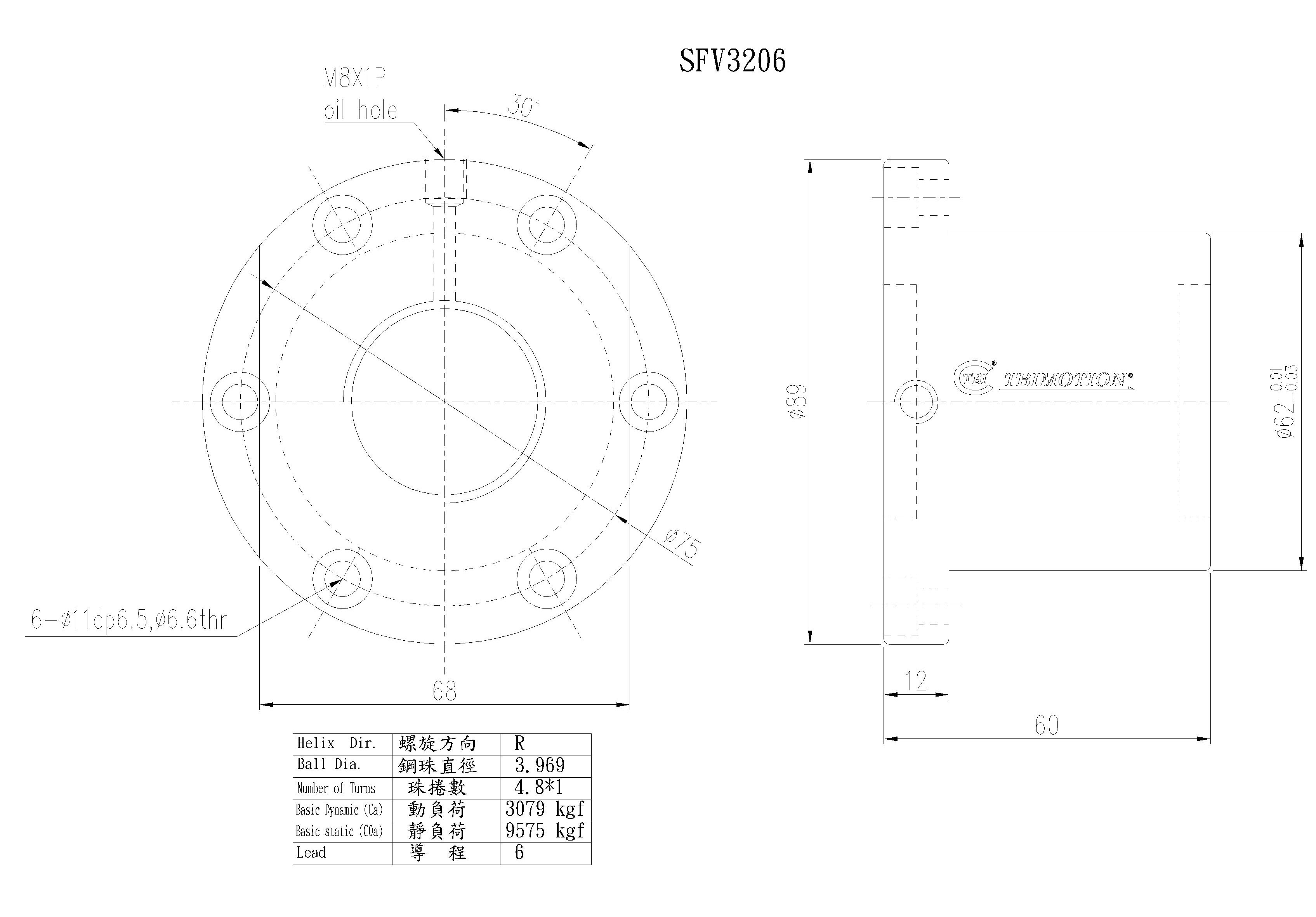 tbi滾珠絲桿螺母SFVR03206D1D,SFNIR03206D1N,法蘭雙切邊或者全圓,絲桿直徑32,導(dǎo)程06,珠圈數(shù)4.8*1,珠直徑3.969,動額定負(fù)荷3079,靜額定負(fù)荷9575,剛性70。