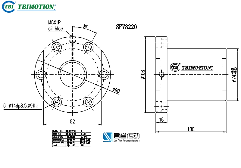 tbi滾珠絲桿螺母SFVR03220B1D,SFNIR03220B1N,法蘭雙切邊或者全圓,絲桿直徑32,導(dǎo)程20,珠圈數(shù)2.8*1,珠直徑6.35,動額定負(fù)荷3509,靜額定負(fù)荷8644,剛性46。