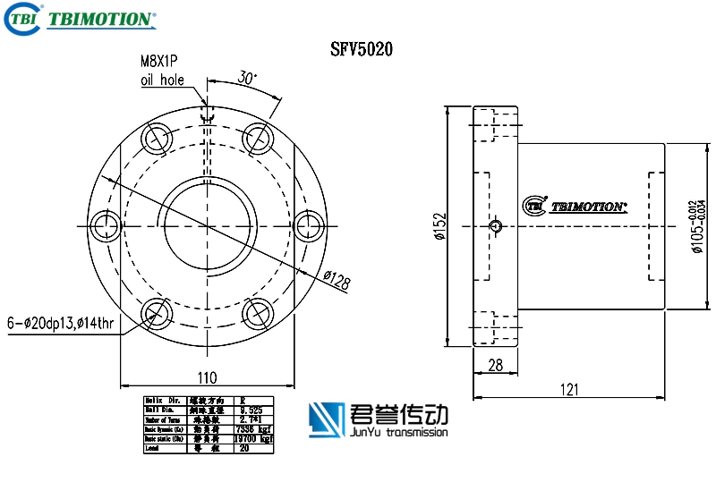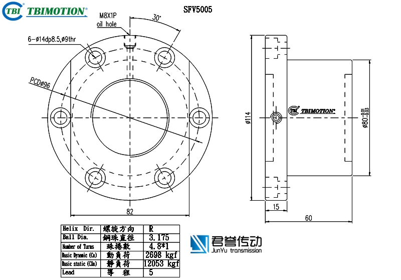 tbi滾珠絲桿螺母SFVR05010D1D,SFNIR05010D1N,法蘭雙切邊或者全圓,絲桿直徑50,導(dǎo)程10,珠圈數(shù)4.8*1,珠直徑6.35,動(dòng)額定負(fù)荷7022,靜額定負(fù)荷23537,剛性106。