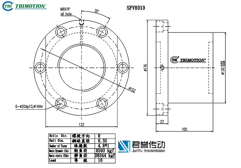 tbi滾珠絲桿SFV8010、SFV8020螺母尺寸圖示: