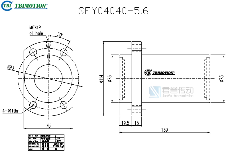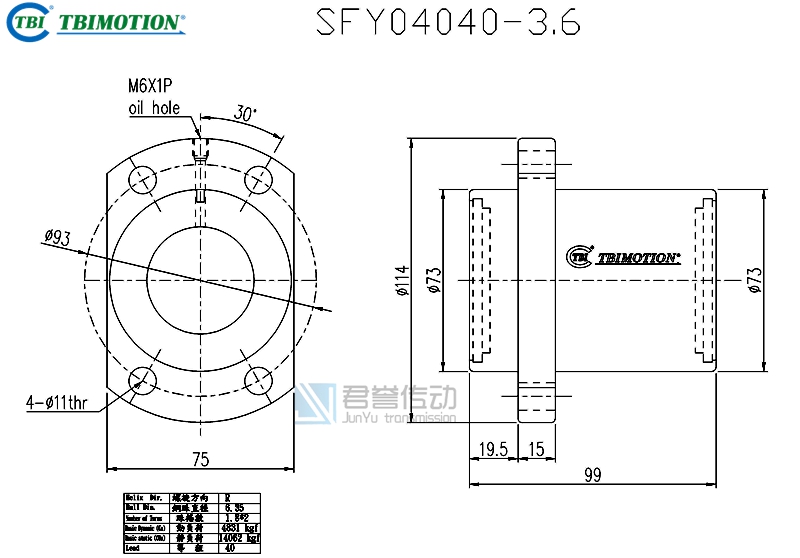 tbi滾珠絲桿SFY4040螺母尺寸圖示: