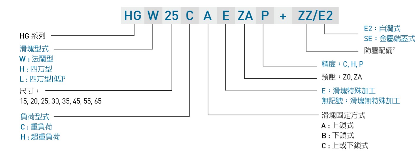 臺(tái)灣上銀直線導(dǎo)軌HG系列滑塊型號(hào)解析: