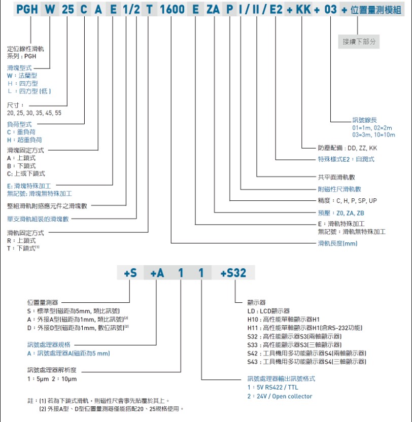 臺灣上銀直線導(dǎo)軌PG系列精密定位直線導(dǎo)軌型號解析: