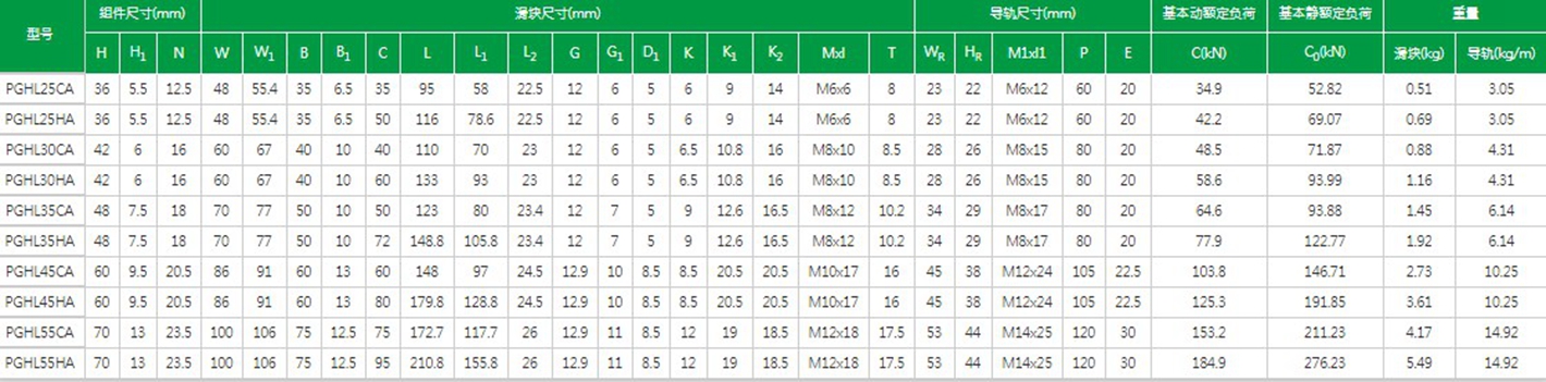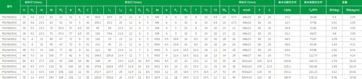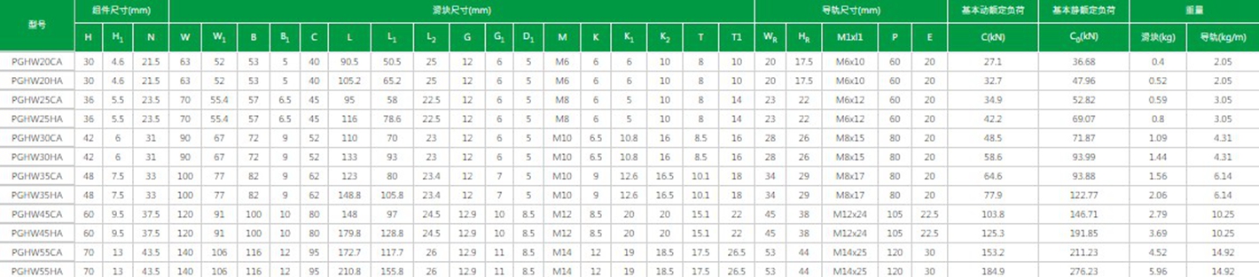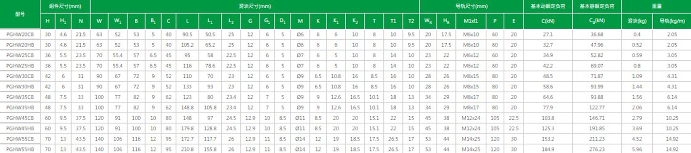 臺灣上銀直線導(dǎo)軌PG系列精密定位直線導(dǎo)軌型號及參數(shù)解析: