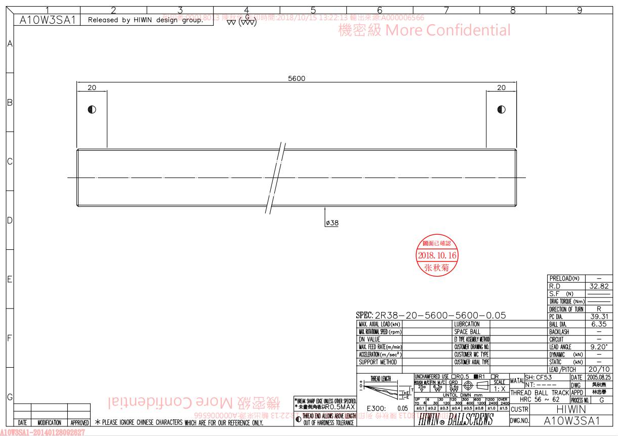 上銀滾珠絲桿2R38-20-5600-5600-0.05