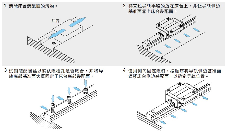 上銀直線導(dǎo)軌安裝必須根據(jù)機(jī)臺(tái)使用狀況、如果受震動(dòng)、沖擊力的程度、要求行走的精度跟機(jī)臺(tái)限制而設(shè)定其中的安裝方法。