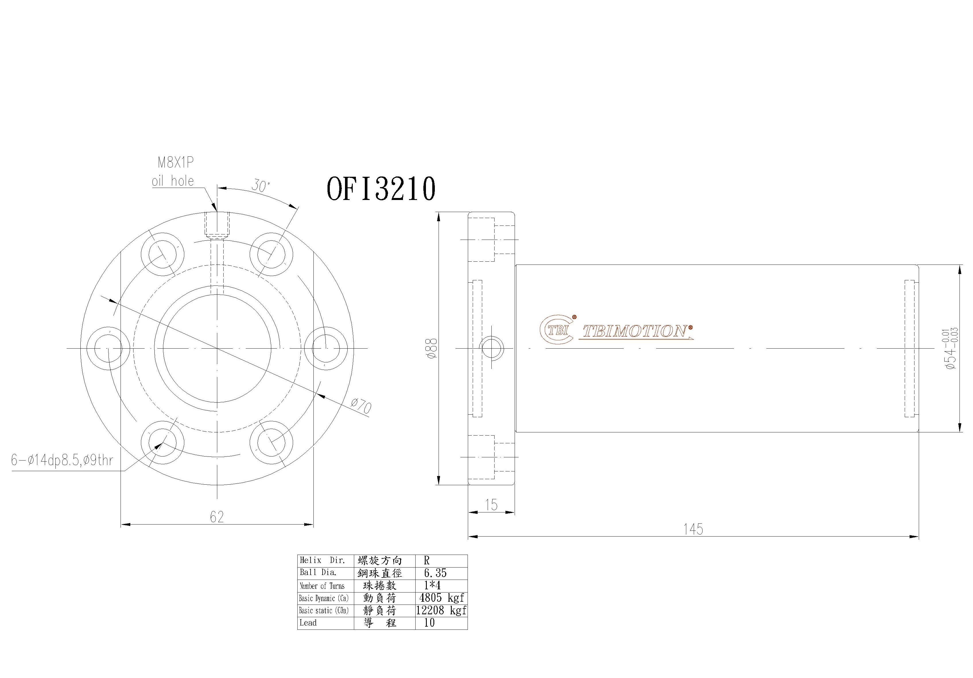 tbi滾珠絲桿OFI3205、OFI3210螺母尺寸圖示: