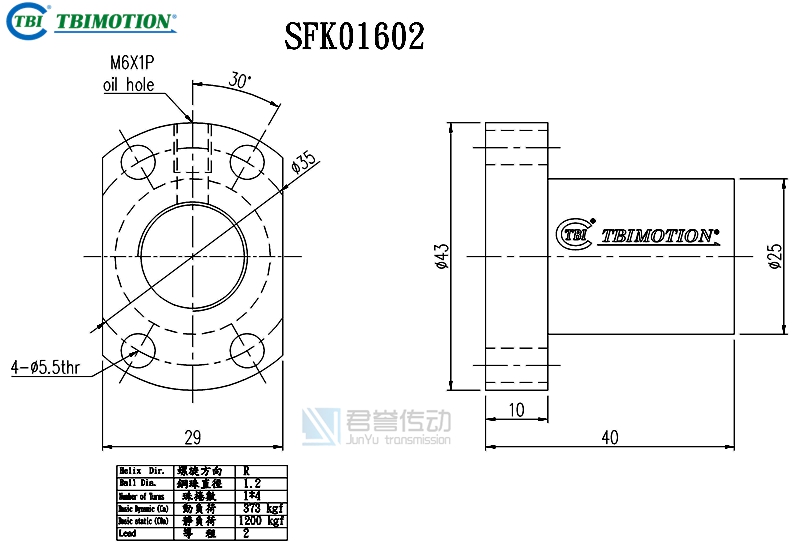 tbi滾珠絲桿螺母SFKR01602,絲桿直徑16,導程02,珠徑1.2,動額定負荷373,靜額定負荷1200,剛性26.