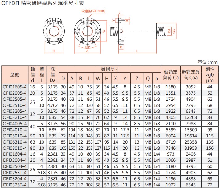 OFI系列型號我公司均備有現(xiàn)貨、臺灣原裝正品研磨絲桿、扎制絲桿通配。