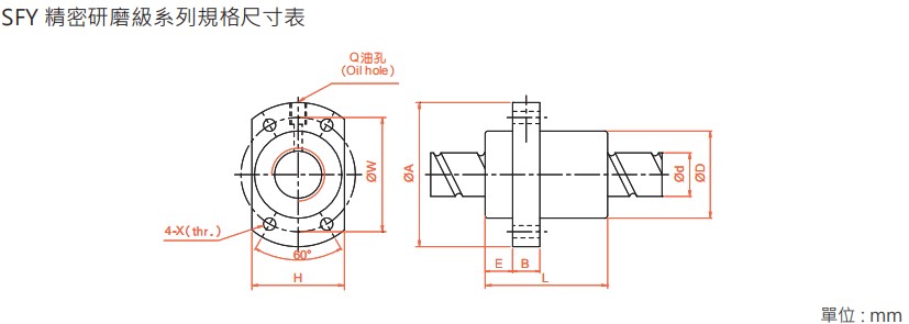 SFY系列為高速?gòu)?qiáng)化防塵型滾珠螺桿,具有高速性、高負(fù)載及高剛性等特性,具有高順暢度,且SFY的特殊設(shè)計(jì)使其防塵效果大幅的提升,循環(huán)結(jié)構(gòu)的強(qiáng)化使其更適合在高速的環(huán)境下運(yùn)作。設(shè)計(jì)提升其穩(wěn)定性、負(fù)載以及使用壽命。