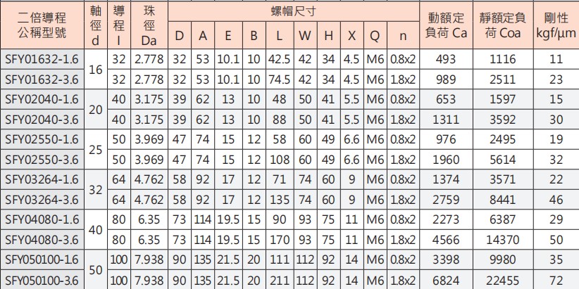 SFY系列雙倍導(dǎo)程系列型號(hào):