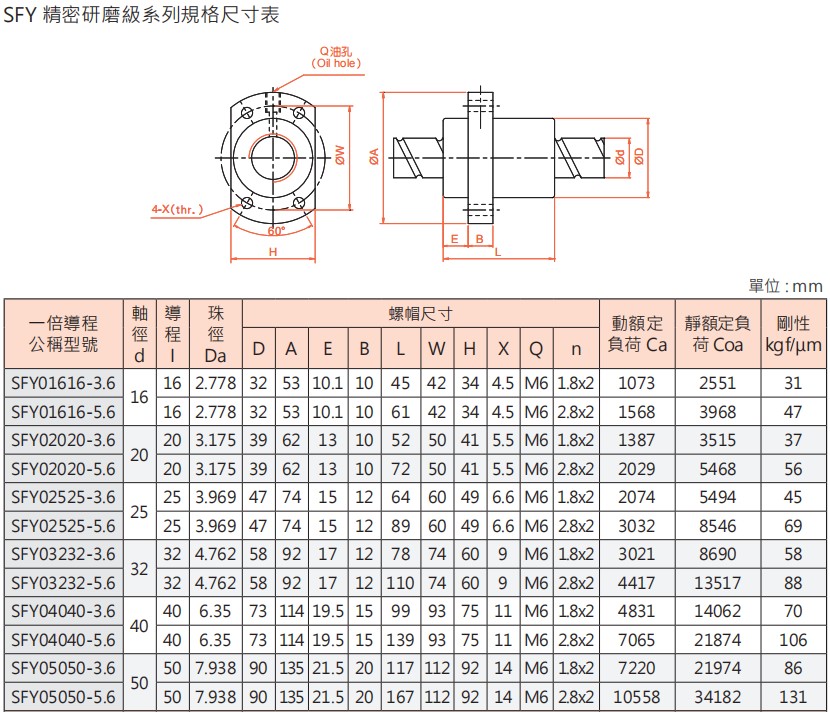 4. 規(guī)格種類其全,多種導程尺寸皆有生產(chǎn)。