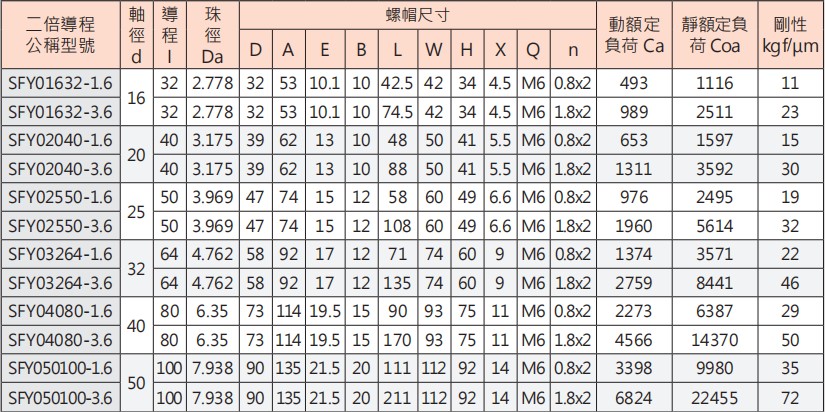 4. 規(guī)格種類其全,多種導(dǎo)程尺寸皆有生產(chǎn)。