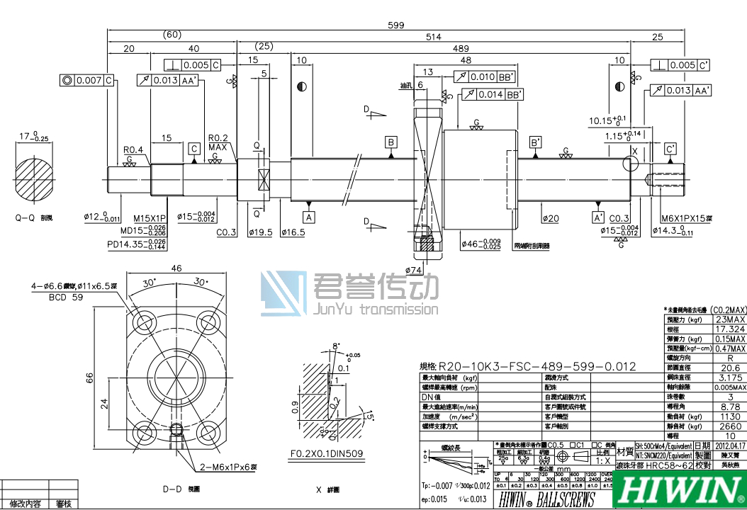 絲桿型號:R20-10K3-FSC-1200-1456-0.012