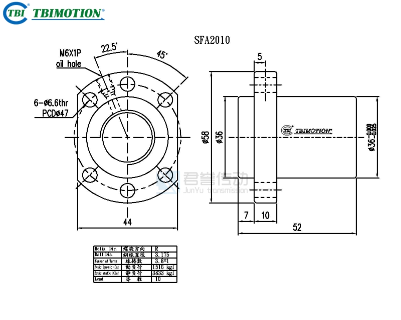 tbi滾珠絲桿SFAR02010C1D螺母尺寸圖示:
