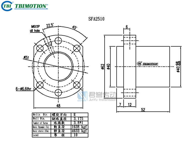 臺灣tbi滾珠絲桿SFAR02510C1D螺母尺寸圖示:
