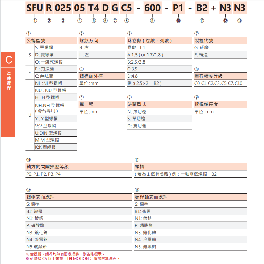 臺(tái)灣tbi滾珠絲桿SFAR04010C1D型號(hào)解析: