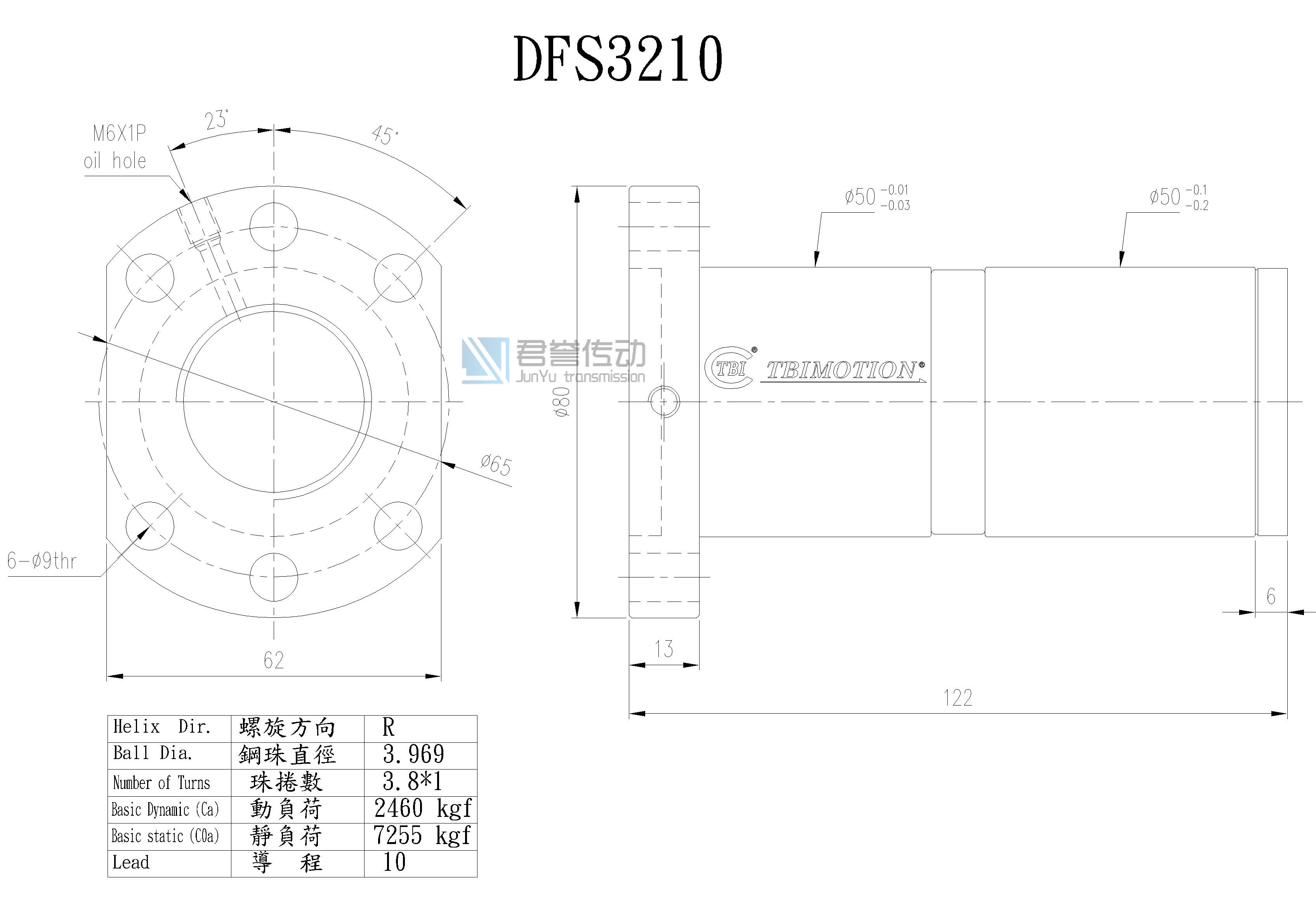 tbi滾珠絲桿DFSR03210T8DGC5-1000-P1雙螺母系列研磨絲桿