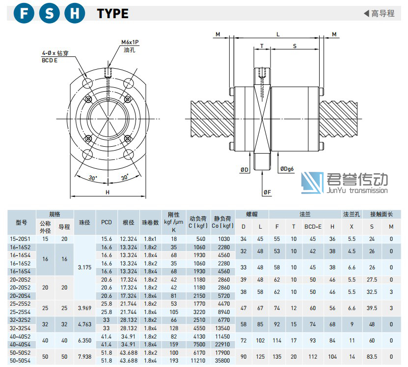 DFSH系列為高導(dǎo)程端改式螺母、最小直徑16、最大直徑50、扎制絲桿系列、