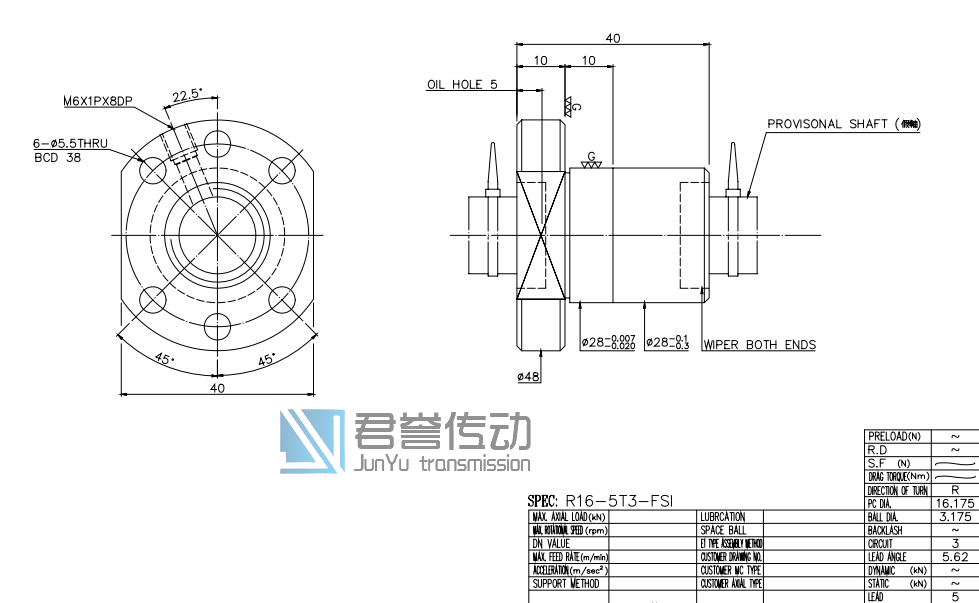 節(jié)圓直徑: Dm=28 導(dǎo)程L=5MM