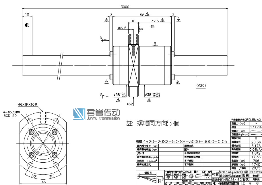 滾珠絲杠規(guī)格:4R20-20S2-DFSH-3000-0.05