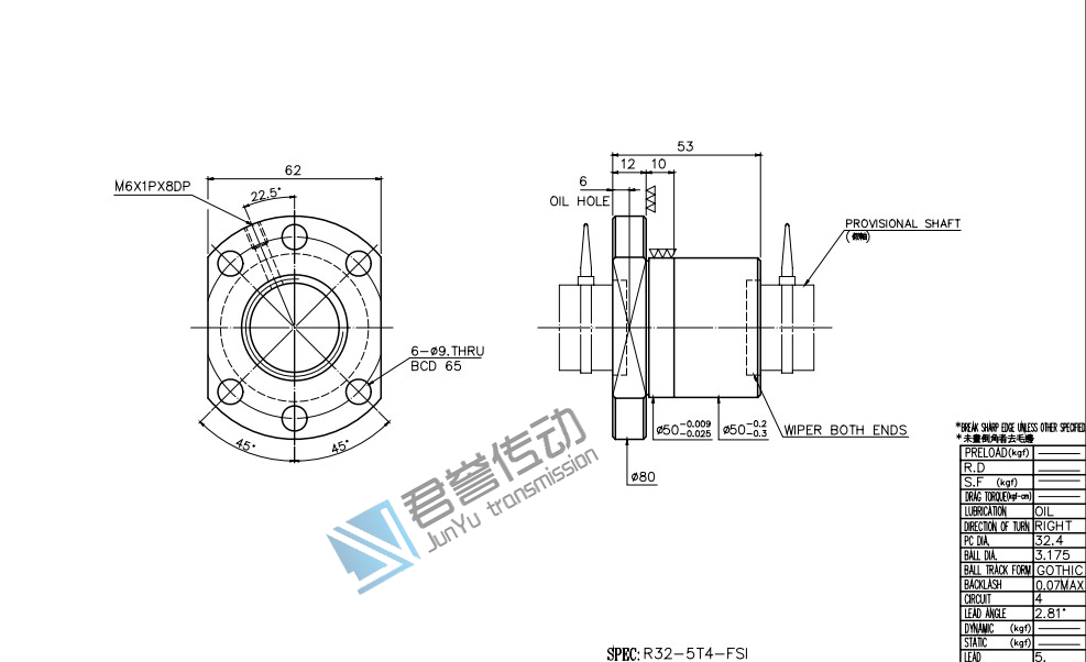 滾珠絲杠規(guī)格:R32-5T3-FSI-0.05